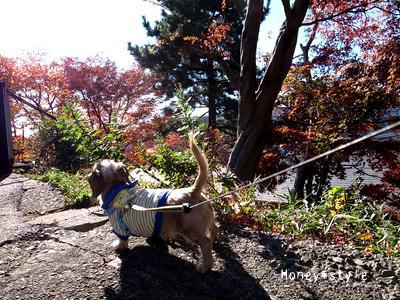 落ち葉もいっぱいでお散歩の後はハニにたくさん葉っぱがくっついています。
