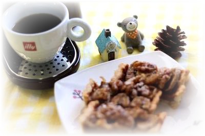 妹が前日に手作りしたクルミのタルトをパクつきました。
