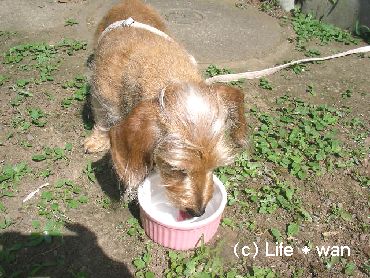 お外でミルクを飲むハニちゃん。