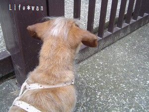 犬見知りのハニもここのわんちゃんとは門扉越しに鼻を突き合わせてご挨拶できます。