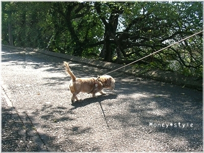 リードを長くしてのんびりとお散歩するには とてもいい道です。